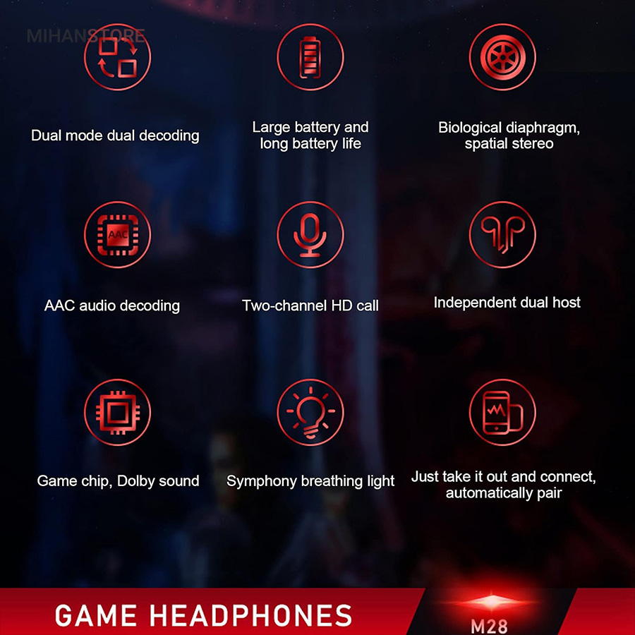 مدل M28 حدودا زمانی 60تا 120 دقیقه لازم دارد تا در کیس خود شارژ شود و اماده به کار باشد؛شما قادر خواهید بود که زمانی که ان هندزفری فول شارژ است حدودا 4تا6ساعت به مکالمه بپردازید یا موسیقی گوش کنید.این هدست بلوتوثی مجهز به یک باتری قدرتمند1200mha و باتری گوشی ها 50 میلی امپری است؛صدای بی نظیر این هدست  HD وشفاف است که این امکان را برای شما فراهم میکند که بتوانید در بازی های همچون PUBG،اپکس لجندز موبایل Apexو… صدای حمله ،صدای هم تیمی خود و… را بسیار واضح بشنوید.با وجود میکروفون با کیفیت که این هندزفری در خود داردصدای شما را در زمان بازی یا مکالمه بدوت تاخیر منتقل میکند و میتوانید عکس العمل نشان دهید وبدون هیچ تاخیر و درنگی به انها پاسخ دهید.